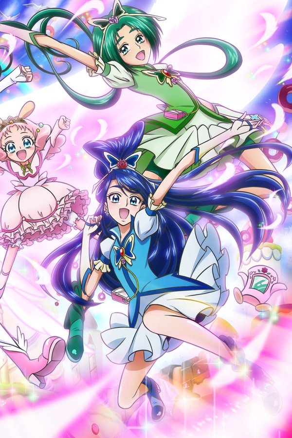 It's Nozomi's birthday, but it is disturbed by Bunbee chasing after a girl from another world, Chocola. When Pretty Cure rescue her, she thanks them by taking them to her country, Dessert Kingdom. In this cockaigne with rivers of juice and candy growing on trees, they feel very comfortable. But then they meet the evil Mushiban and his two subordinates Dry and Bitter. They want to take over the kingdom and change Pretty Cure into sweets. In order to save not only Nozomi's Birthday but also the whole Dessert Kingdom, Pretty Cure have to fight their way against Dry and Bitter and also against their own friend: Coco, who is being brainwashed by Mushiban.